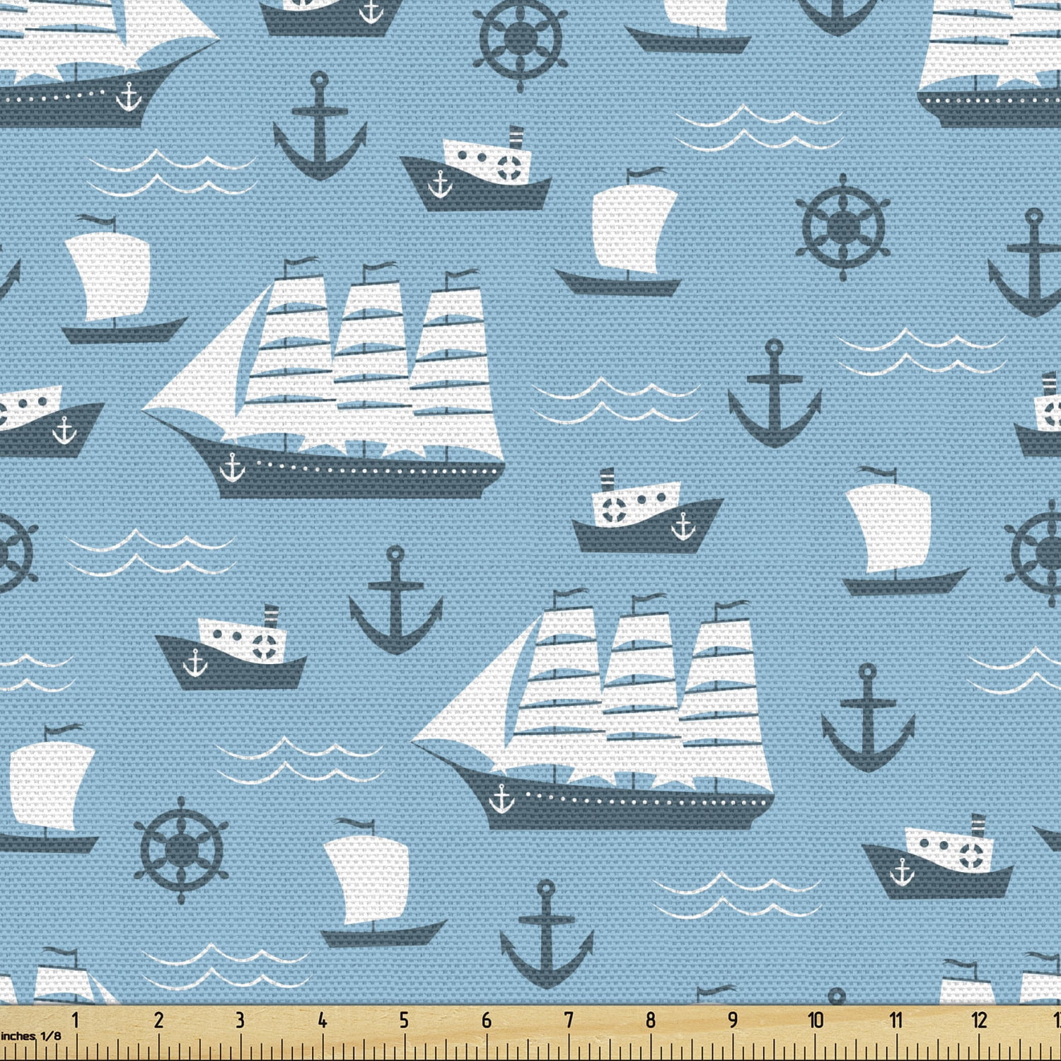 Anchor Fabric By The Yard Ships Boats And Helms Cartoon Ocean Old School Transportation Design Upholstery Fabric For Dining Chairs Home Decor Accents Blue Pale Blue And White By Ambesonne Walmart Com